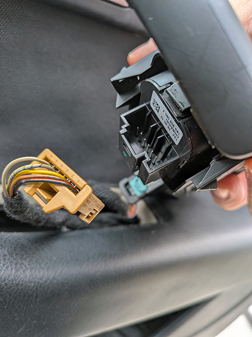 コネクタを接続し、動作確認(ミラーが動くか、ヒーターが入るか)をしてから、パネルを上から押し込んで元に戻せば完了です。